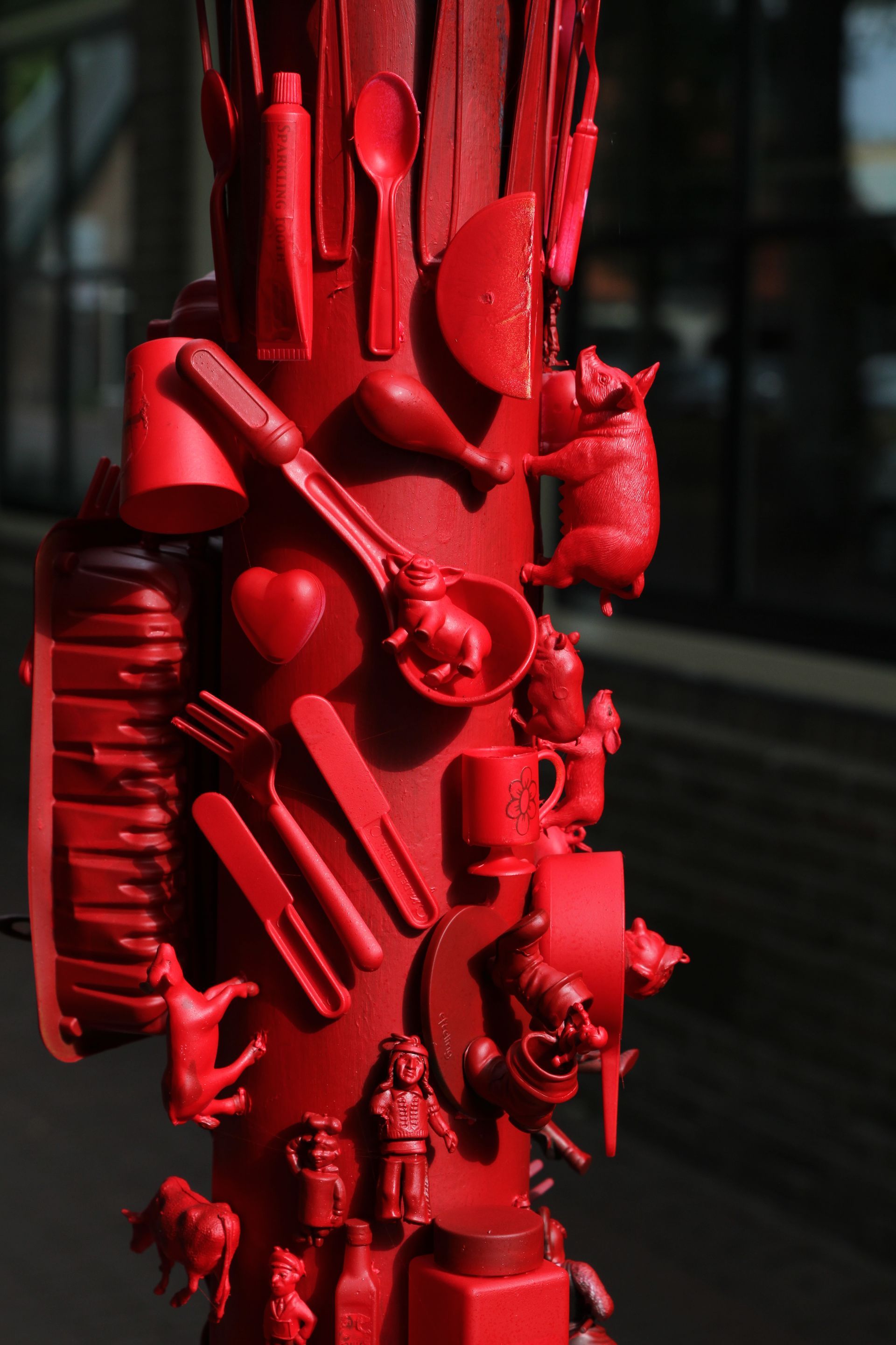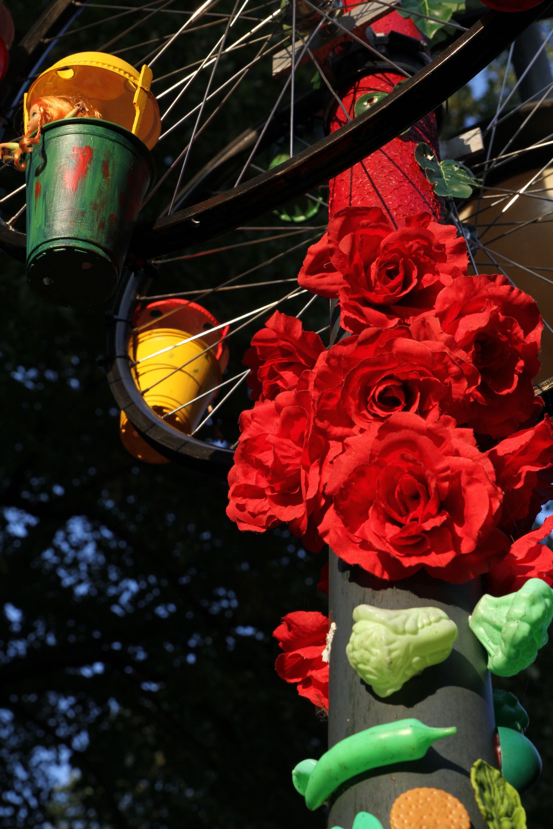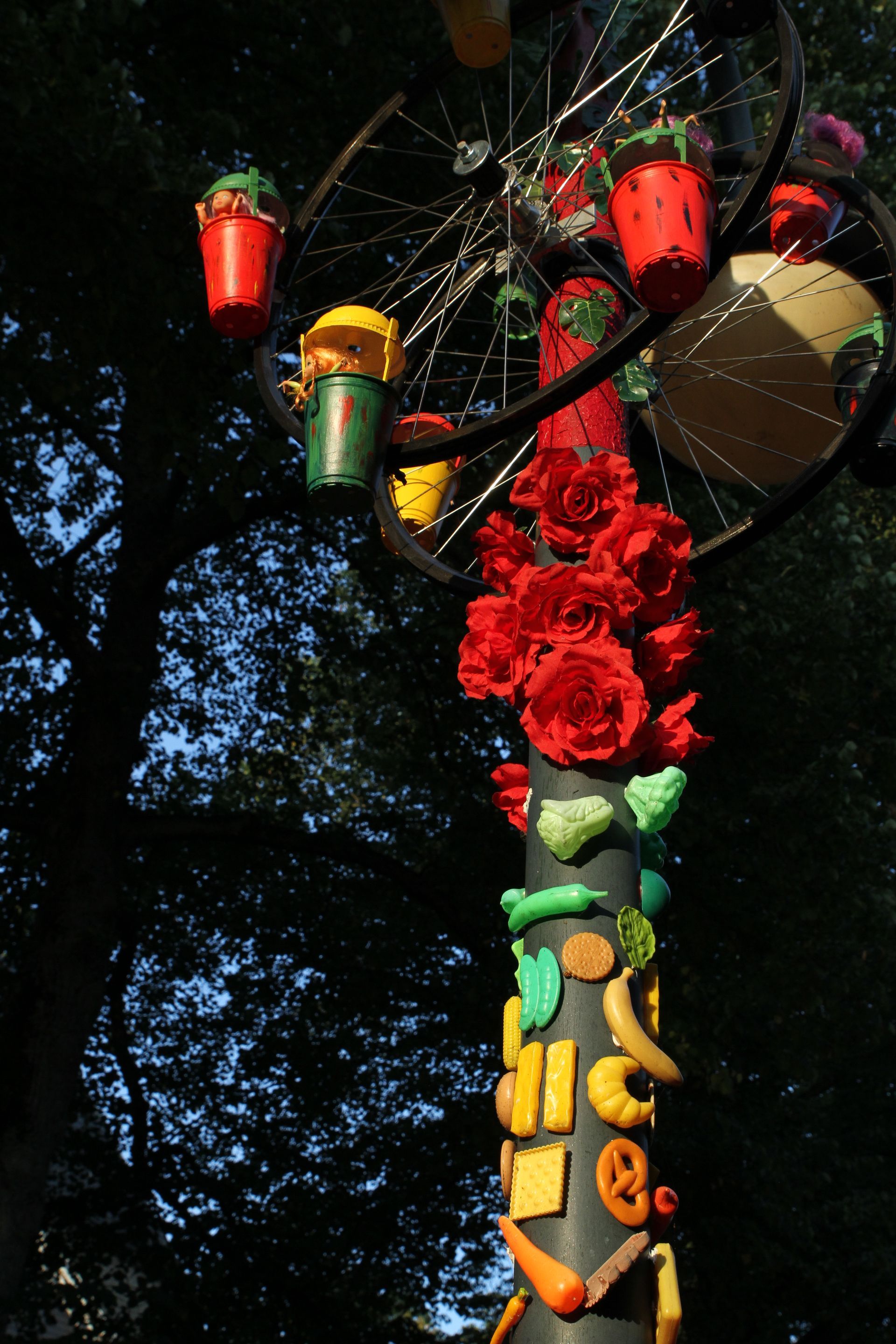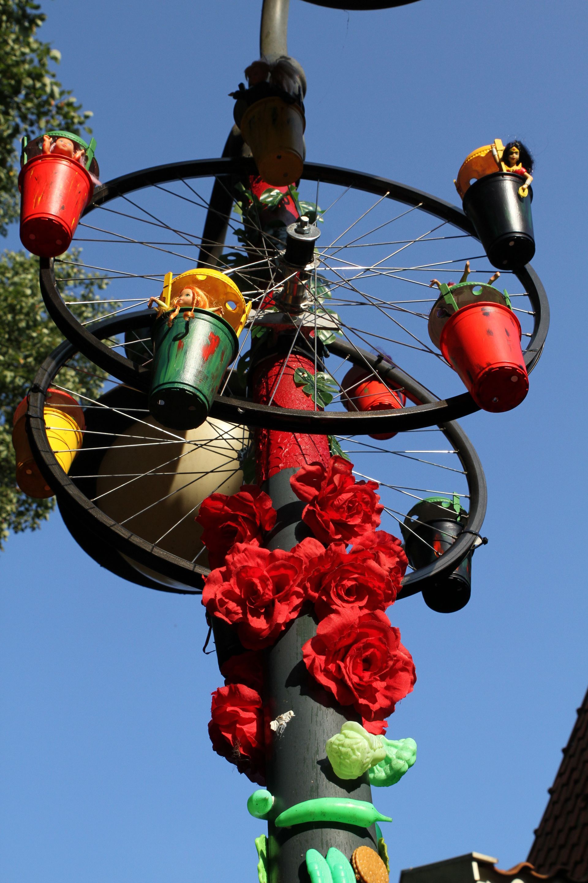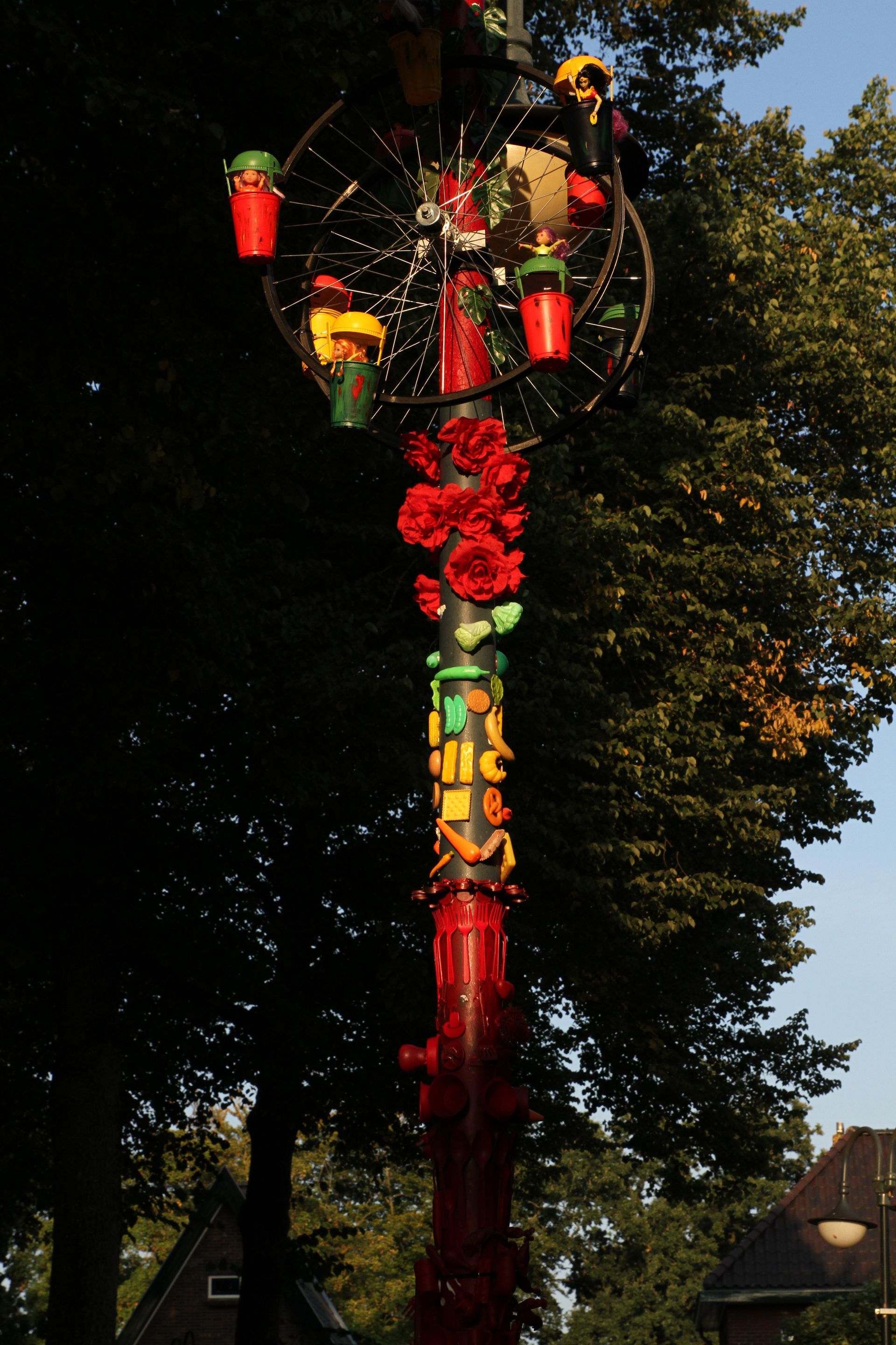 Het kunstwerk is in enkele weken gegroeid tot wat het nu is. Hij is opgebouwd uit vele voorwerpen, heel oud en heel nieuw, waardeloos en waardevol, gezellig en ongezellig, van vroeger en van nu.