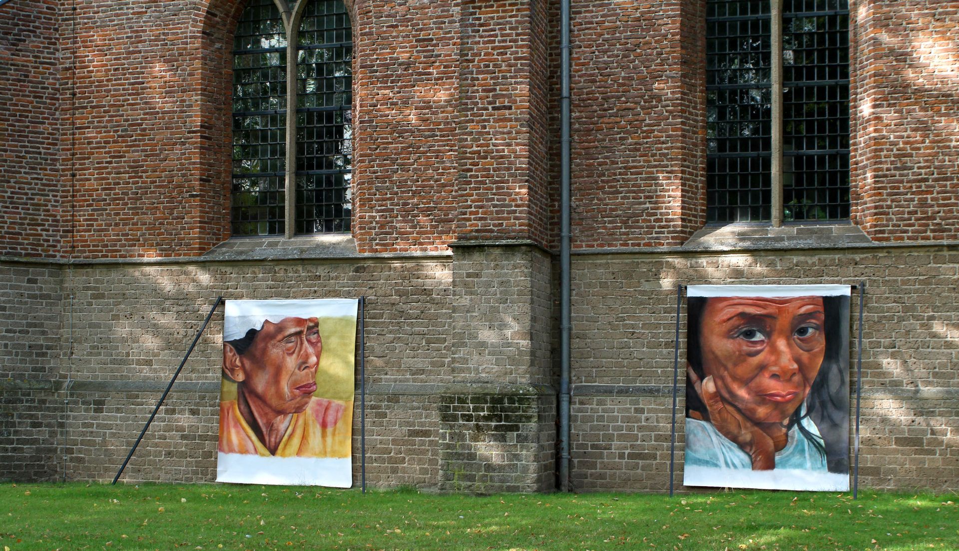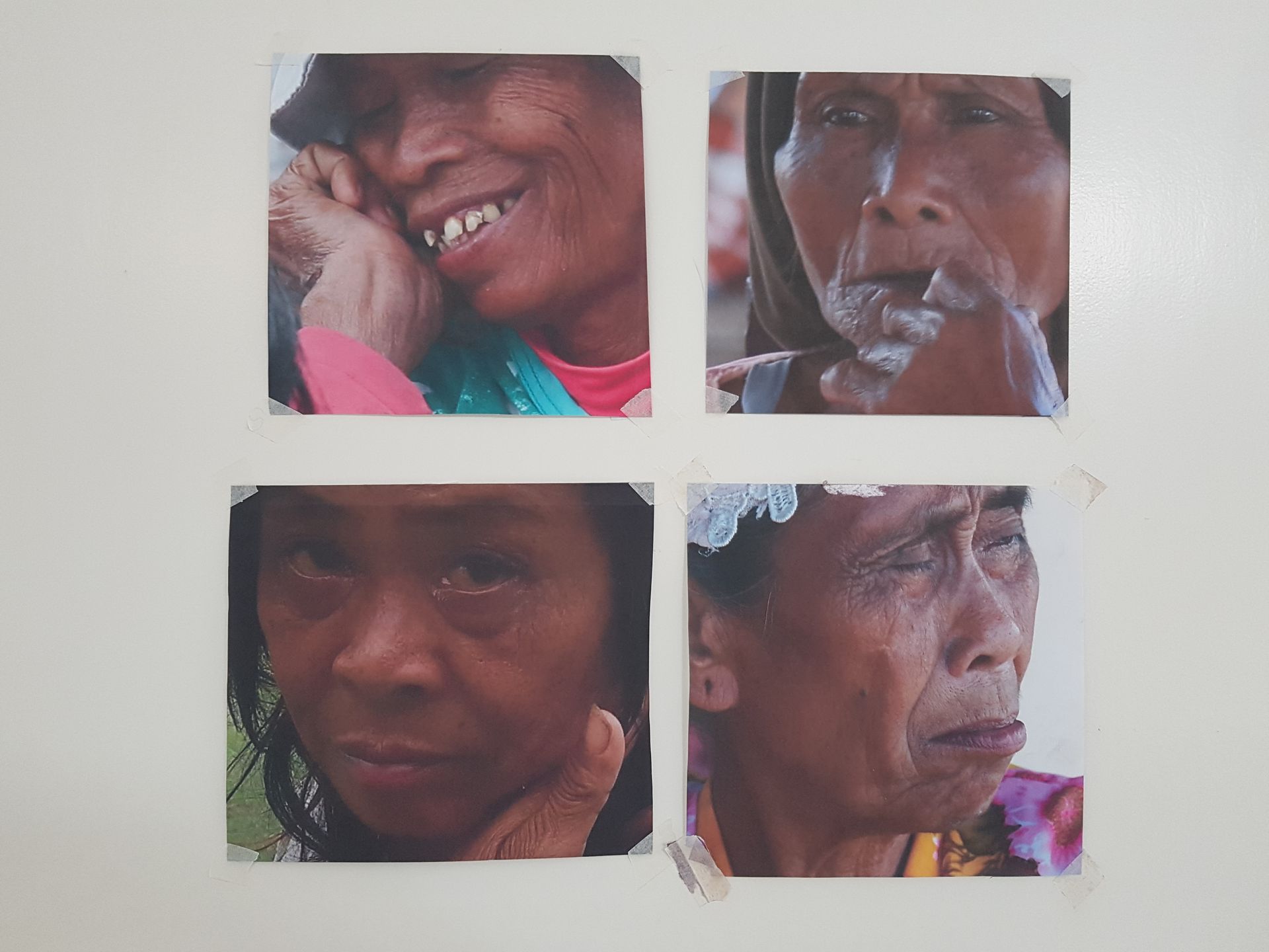 Vier grote portretten van vrouwen die ik heb ontmoet op het eiland Gili Gede in Lombok.