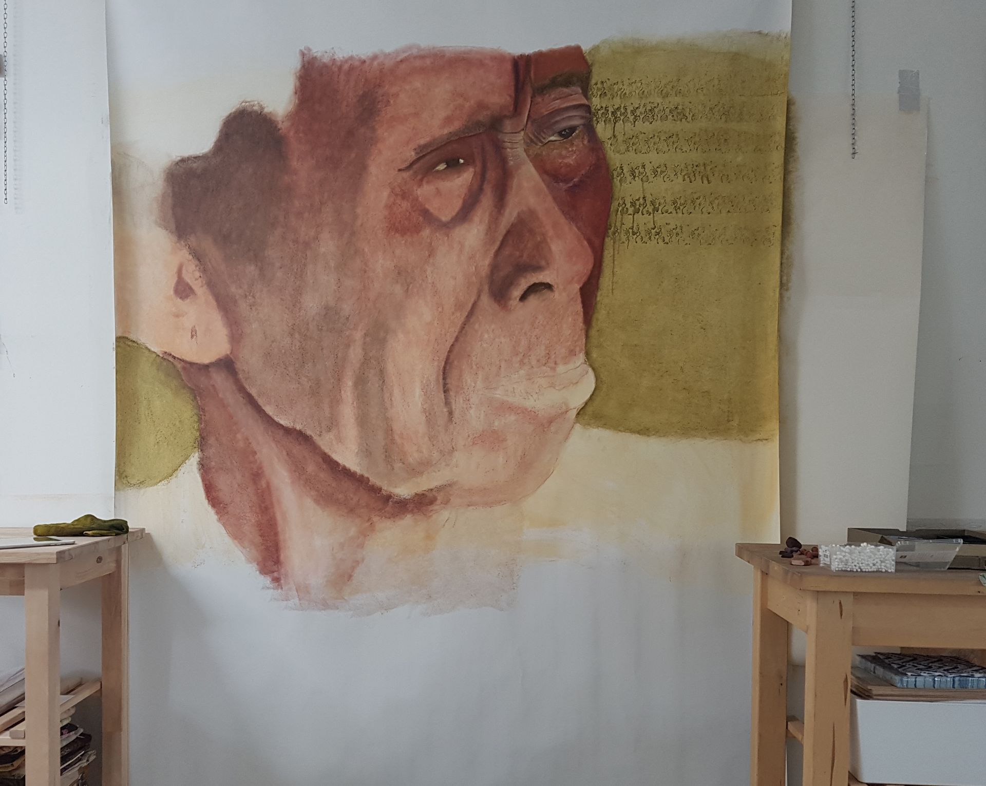 Het werken aan deze grote pasteltekeningen is een ontmoeting, een ontmoeting met het materiaal en het portret.